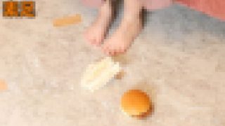 FC⑫「29歳ギャルモデル フードクラッシュ4/4」ジャンピングクラッシュから始まり容赦なくお寿司を踏んでいます?足裏アップで足指を動か...