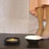 メイドさんコスにローファーで食パンを4枚とトーストしたものを1枚の計5枚を踏み潰してもらいました。