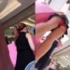 水色パンティーを見せつけながら歩く。