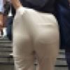 白タイトスカートをアップし、透け見えたTバックラインを映します。