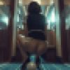 存在感たっぷりの形の良いお尻、艶やかな光沢パンストに包まれた足